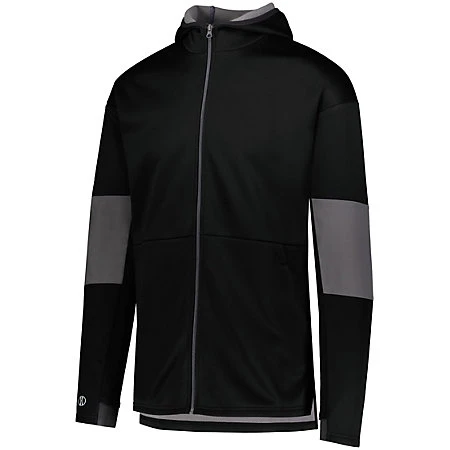 Experience the ultimate in softness and stretch in the Sof-Stretch Jacket by Holloway. Our Storm Dfend™ Technology features a durable water-resistant finish to keep you dry, while its knit softshell breathes to keep you comfortable. This polyester hooded jacket features Sof-Stretch knit with DWR finish bonded to microfleece for warmth. The contrast color sleeve inserts add additional style to this versatile jacket.