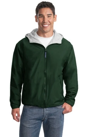 A jacket as spirited as your team. With sporty styling, the nylon shell repels water while the sweatshirt fleece lining in the hood and body provides comfort and warmth.